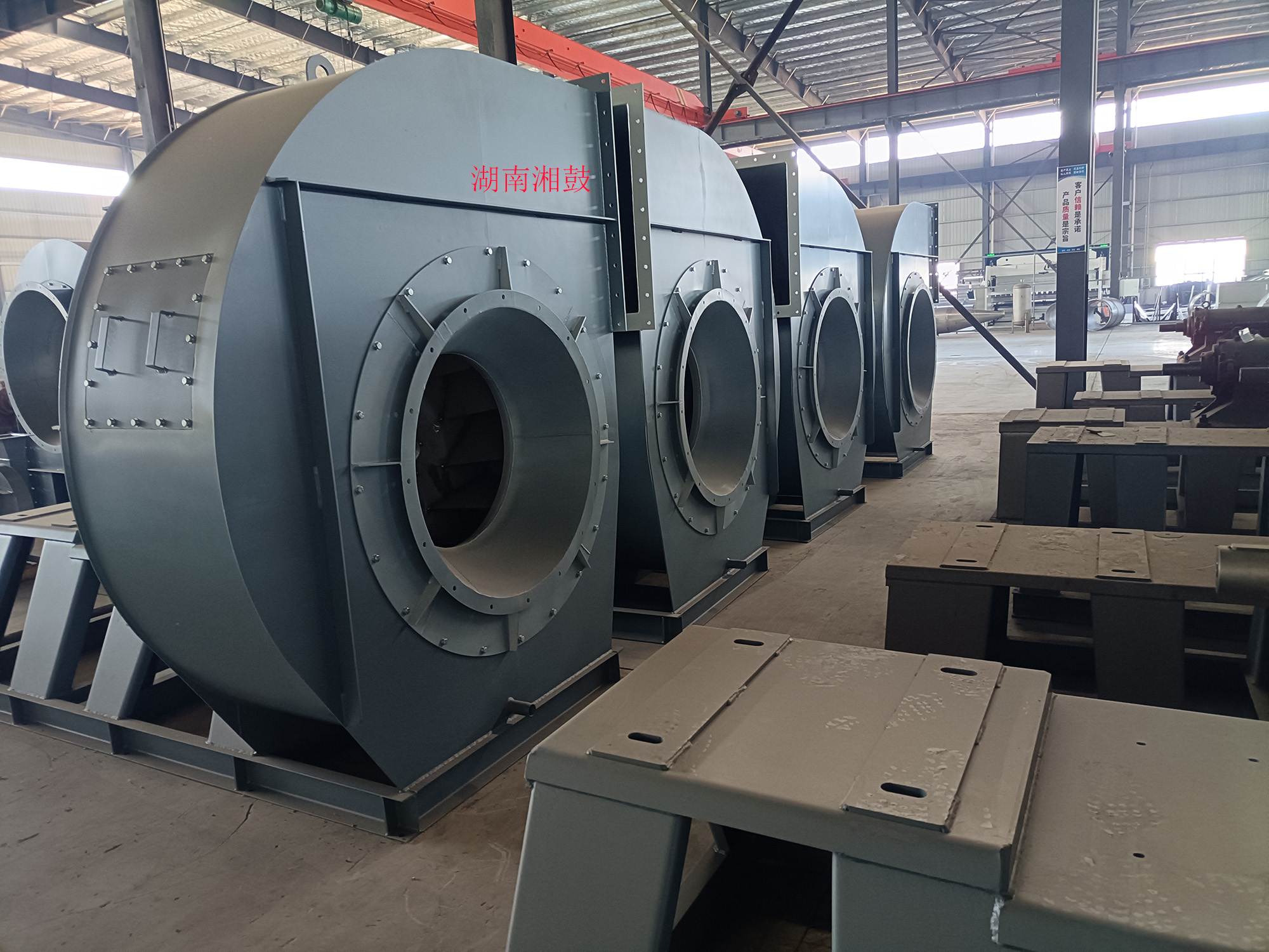 湖南湘鼓鼓風機制造有限公司(長沙第二風機廠)原廠建于1978年,機械部定點生產風機的企業,原設有長沙地區風機檢測站。于2016年重組遷入湖南益陽。公司占地32畝,擁有各類主要加工檢測設備100余臺套,是目前湖南省具一定規模的鼓風機及配件制造廠家。現已生產離心式通風機(又稱離心風機)和羅茨鼓風機二大系列,按用途分為高溫風機、不銹鋼高溫風機、不銹鋼離心通風機、造紙通風機、襯膠防腐風機、除塵風機、脫硫塔風機、增壓風機、鍋爐風機、掃路車風機、貼陶瓷耐磨風機、窯爐風機(磚窯風機)、煤粉灰輸送風機、燃燒器助燃鼓風機、斜槽高壓風機、化鐵爐風機、造氣鼓風機、養殖增氧風機污水處理曝氣鼓風機、脫硫氧化鼓風機氣力輸送鼓風機、印刷送風機電鍍槽鼓風機等三十多個系列通用型及十多個系列特種型風機,按國標型號分:4-72,T4-72,4-68,4-79,9-19,9-26,8-09,9-12,C6-48,C6-46,C4-73,GY4-68,GY4-73,GY6-51,GY8-39,GY9-38,GY6-30,GY6-48,GY6-41,GY5-51,GY5-47,GY5-48,GD30K2-12,以及XG80-500口徑的羅茨鼓風機。更多產品詳細介紹在首頁菜單檔上的產品中心    http://www.cshfhb.com/pclass/?classa=1